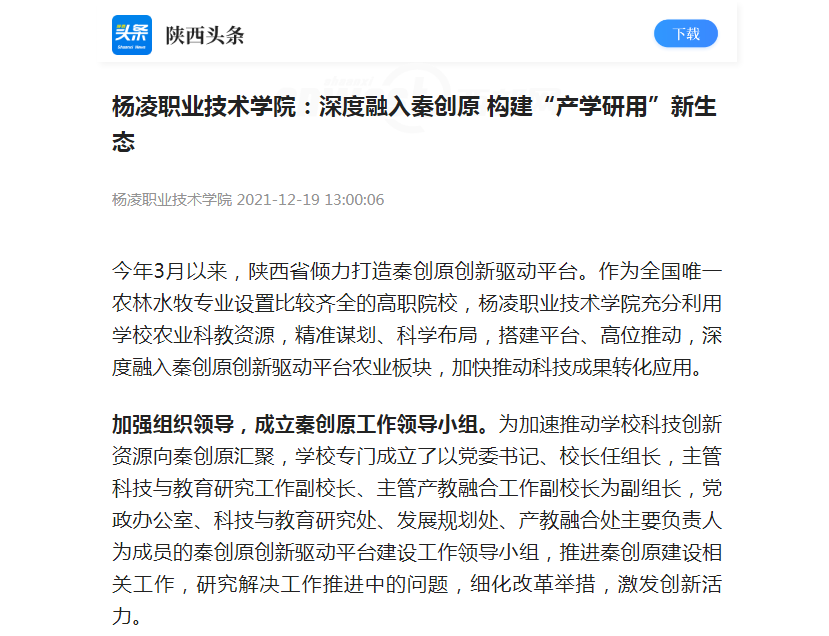 【陕西头条】杨凌职业技术学院:深度融入秦创原 构建“产学研用”新生态