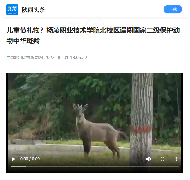 【陕西头条】儿童节礼物?杨凌职业技术学院北校区误闯国家二级保护动物中华斑羚