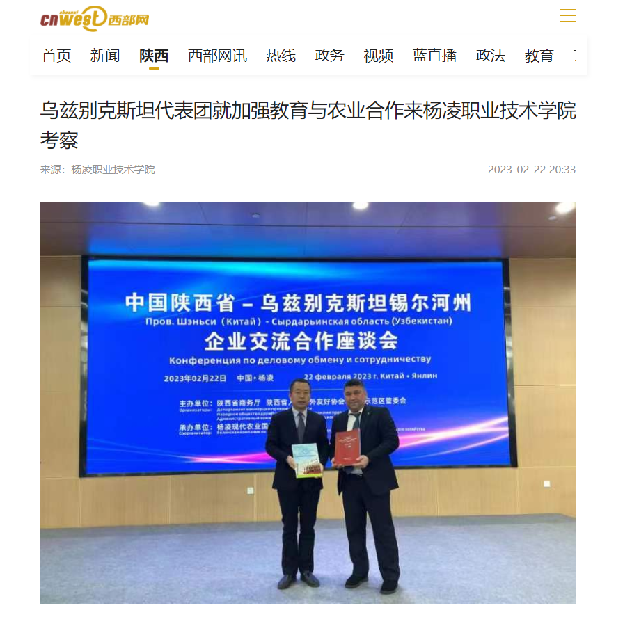 近年来,在上合组织农业技术交流培训示范基地框架内,陕西省与乌兹别克斯坦锡尔河州在农业、教育等领域的合作交流不断加强,杨凌职业技术学院参与建设的“上合组织农业培训示范基地中乌现代农业科技园区”和“杨凌职业技术学院乌兹别克斯坦现代农业技术示范创新基地”,以及与杨凌职业技术学院开展教育合作的古利斯坦国立大学均位于锡尔河州境内。下一步,杨凌职业技术学院将不断加强与锡尔河州有关机构的合作,推进现代农业的科技成果的转化,通过完善在该州的“杨凌职业技术学院乌兹别克斯坦现代农业技术示范创新基地”建设,全面参与“上合组织农业培训示范基地中乌现代农业科技园区”建设,进一步扩大学校在上合组织国家现代农业的引领作用。(文/郭飞 图/史良琦)