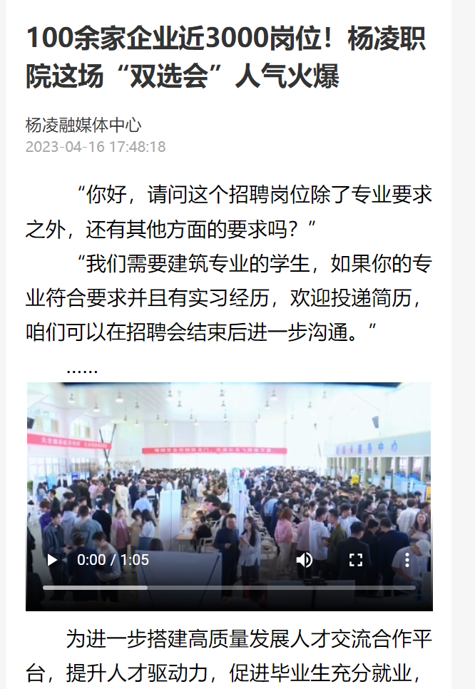 “到目前为止,伟德官网2023届毕业生就业人数已经达到了61.35%左右。下一步,伟德官网将继续通过线上线下相结合的方式开展招聘活动,同时,针对低收入群体的学生进行‘宏志助航计划’培训,有效打通人才供需两端,助力企业更好借助高校人才和智力集成优势,实现创新发展。”杨凌职业技术学院招生就业处就业科副科长杨丽军说道。