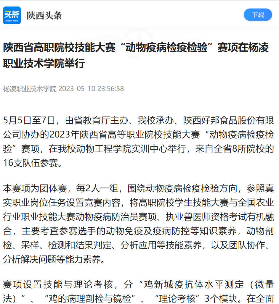 【陕西头条】陕西省高职院校技能大赛“动物疫病检疫检验”赛项在杨凌职业技术学院举行