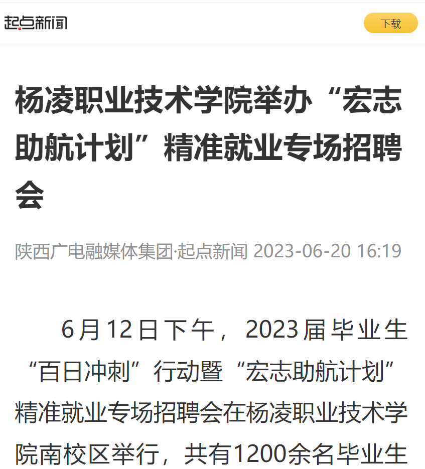 下一步,杨凌职业技术学院将继续为2023届毕业生拓展就业渠道,在求职关键期为毕业生提供充足的就业机会和岗位,全方位、多角度开展精准帮扶,为毕业生高质量就业保驾护航。