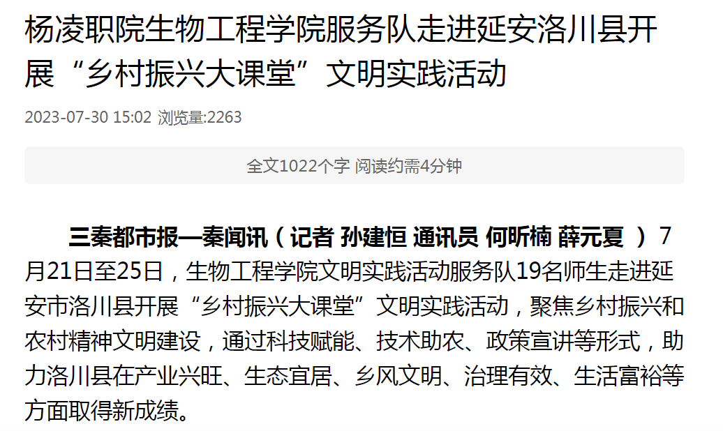 【秦闻】杨凌职院生物工程学院服务队走进延安洛川县开展“乡村振兴大课堂”文明实践活动