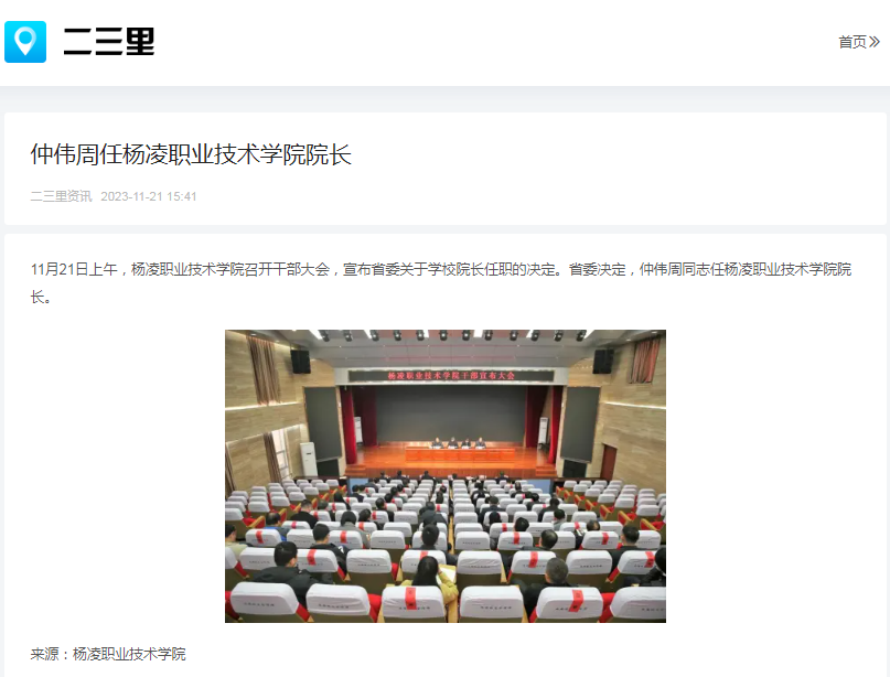 【二三里】仲伟周任杨凌职业技术学院院长