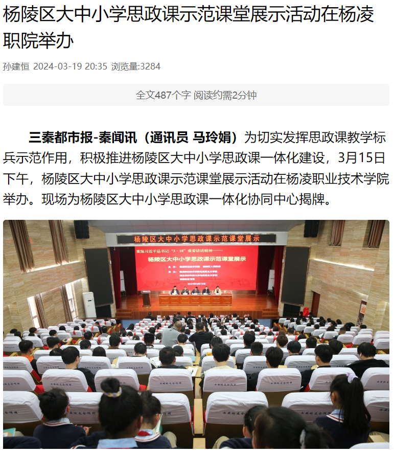 本次活动由杨凌职业技术学院与杨陵区人民政府主办。政校共同开展杨陵区大中小学思政课示范课堂展示活动,是双方深化校地合作、推进大中小学思政课一体化建设的一项重要举措。杨凌职院将围绕共同构建协同思政育人新机制,加强有机衔接,统筹设计,实现学段纵向有序衔接、课程内容横向有效贯通、课程资源合理配置与科学使用;注重方法创新,丰富载体,创新形式,提升学生学习兴趣和获得感;强化师资培养,不断提高思政课教师专业素养和教学能力。