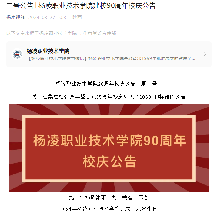 【杨凌视线】二号公告│杨凌职业技术学院建校90周年校庆公告