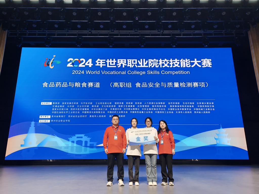 10月25日至30日,2024年世界职业院校技能大赛高职组食品药品与粮食赛道“食品安全与质量检测”赛项争夺赛在贵州农业职业学院成功举办,共有来自全国27个省、自治区、直辖市的61支代表队200余名师生参赛。由杨凌职业技术学院生物工程学院张红娟、崔利辉老师指导,杜晶晶、刘蕊华同学组成的代表队以卓越的现场发挥和扎实的专业技能操作勇夺金奖,位列小组第一名。