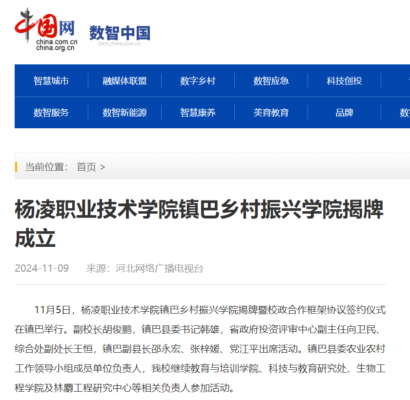 11月5日,杨凌职业技术学院镇巴乡村振兴学院揭牌暨校政合作框架协议签约仪式在镇巴举行。副校长胡俊鹏,镇巴县委书记韩雄,省政府投资评审中心副主任向卫民、综合处副处长王恒,镇巴副县长邵永宏、张梓媛、党江平出席活动。镇巴县委农业农村工作领导小组成员单位负责人,伟德官网继续教育与培训学院、科技与教育研究处、生物工程学院及林麝工程研究中心等相关负责人参加活动。