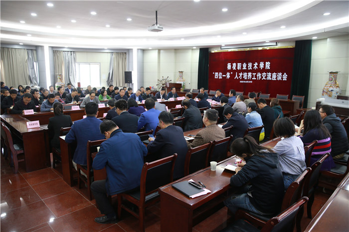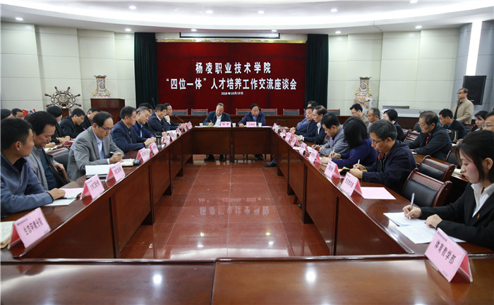 为进一步贯彻“立德树人”根本任务,落实“四位一体”人才培养方案,全面提高人才培养质量,10月10日,杨凌职院召开“四位一体”人才培养方案实施情况座谈交流会。该院党委书记赵曼,院长王周锁,副院长张永良、张迪,党委委员、党政办主任祝战斌,党委委员、教务处处长张宏辉出席座谈会。座谈会由副院长张永良主持。