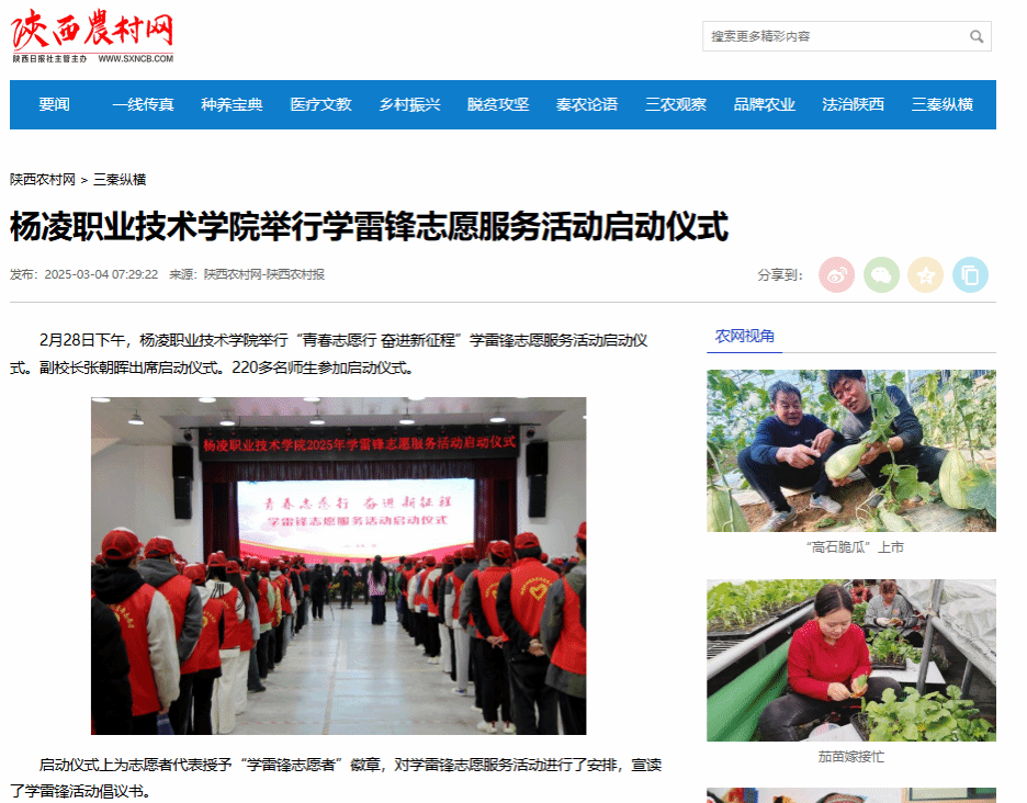 长期以来,杨凌职业技术学院青年志愿者始终秉持“奉献、友爱、互助、进步”的志愿精神,积极参与各类社会服务活动,展现了新时代青年的责任与担当,取得了显著的社会效益和广泛赞誉。学校将持续健全志愿服务制度体系,创新志愿服务工作模式,深化志愿服务品牌建设,推动志愿服务专业化、常态化、长效化发展,引导更多杨职青年在服务社会需求中增长才干、彰显价值,为学校发展注入青春动能。