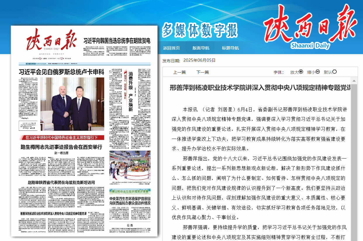 【陕西日报】邢善萍到杨凌职业技术学院讲深入贯彻中央八项规定精神专题党课