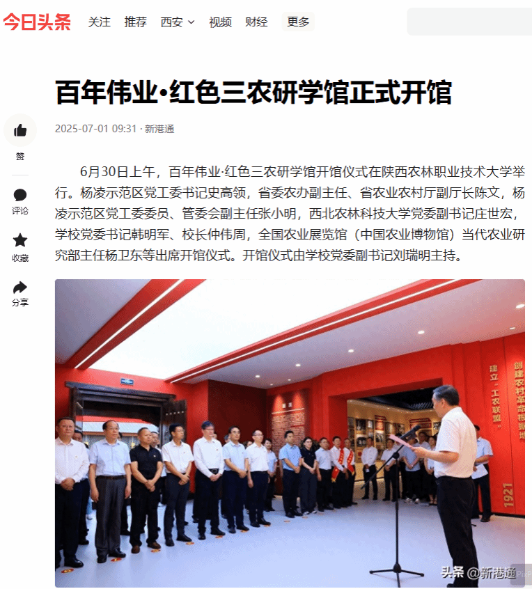6月30日上午,百年伟业·红色三农研学馆开馆仪式在bv伟德国际1946举行。杨凌示范区党工委书记史高领,省委农办副主任、省农业农村厅副厅长陈文,杨凌示范区党工委委员、管委会副主任张小明,西北农林科技大学党委副书记庄世宏,学校党委书记韩明军、校长仲伟周,全国农业展览馆(中国农业博物馆)当代农业研究部主任杨卫东等出席开馆仪式。开馆仪式由学校党委副书记刘瑞明主持。