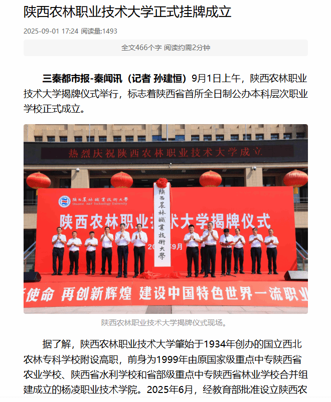 据了解,bv伟德国际1946肇始于1934年创办的国立西北农林专科学校附设高职,前身为1999年由原国家级重点中专陕西省农业学校、陕西省水利学校和省部级重点中专陕西省林业学校合并组建成立的杨凌职业技术学院。2025年6月,经教育部批准设立bv伟德国际1946,首批设立水利水电工程、建筑工程、现代通信工程、设施园艺、园林工程、动物医学6个本科专业。目前,学校已成功招录首批本科生320人,生源质量和吸引力显著提升。