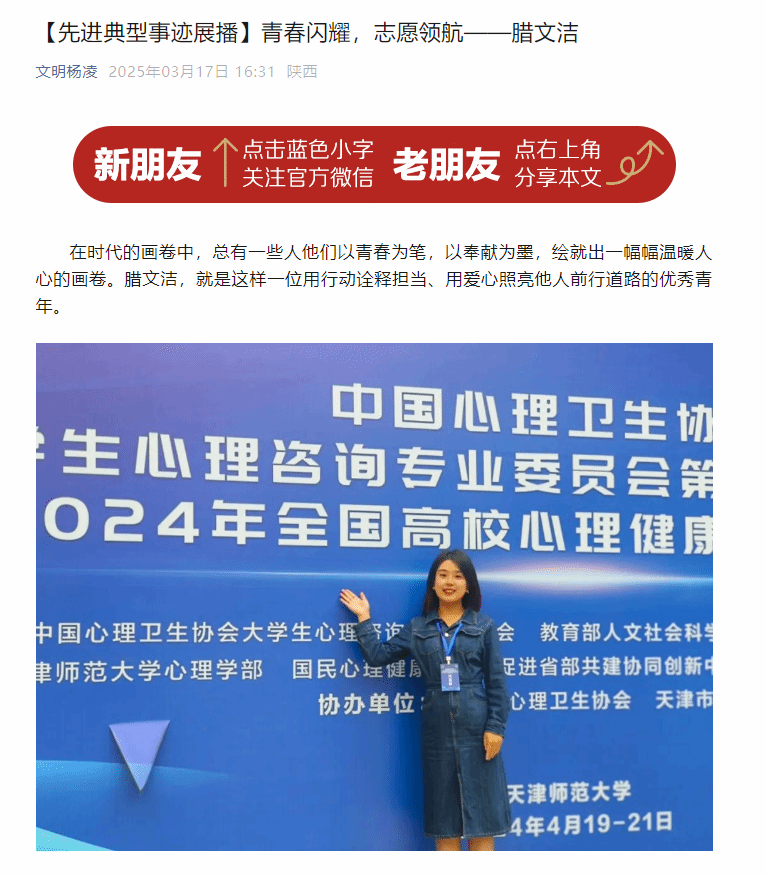 【文明杨凌】【先进典型事迹展播】青春闪耀,志愿领航——腊文洁