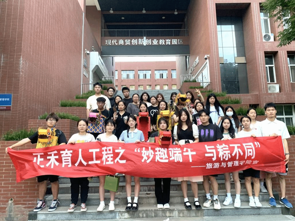 6月19日,旅游与管理学院在北校区组织开展“妙趣端午,与粽不同”端午节活动。活动包括发放粽子、粽子运输机、射五毒、粽子滚滚来、悬挂的粽子、粽子保龄球、粽子套圈、艾草香囊DIY和旱地龙舟等,让师生在活动中感受传统文化魅力。