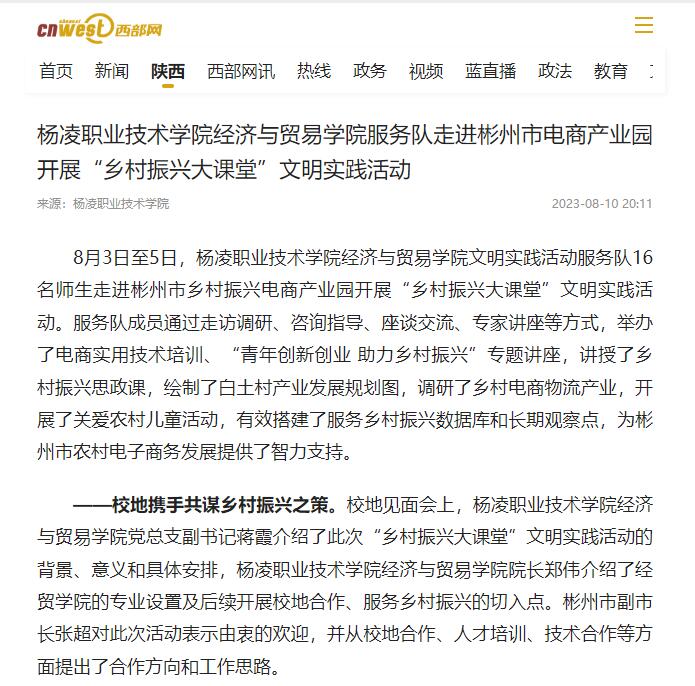 【西部网】杨凌职业技术学院经济与贸易学院服务队走进彬州市电商产业园开展“乡村振兴大课堂”文明实践活动