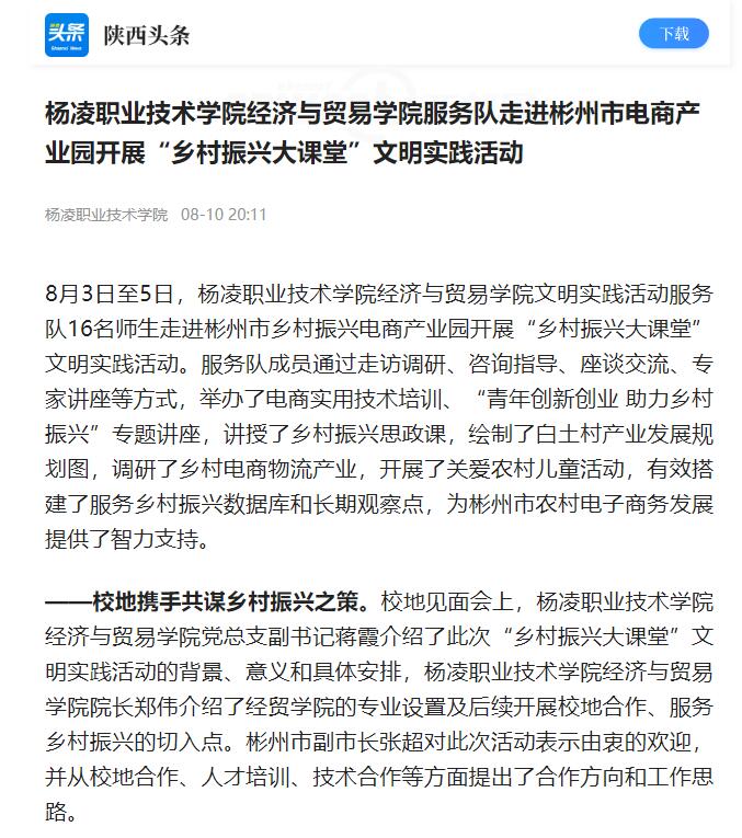 【陕西头条】杨凌职业技术学院经济与贸易学院服务队走进彬州市电商产业园开展“乡村振兴大课堂”文明实践活动