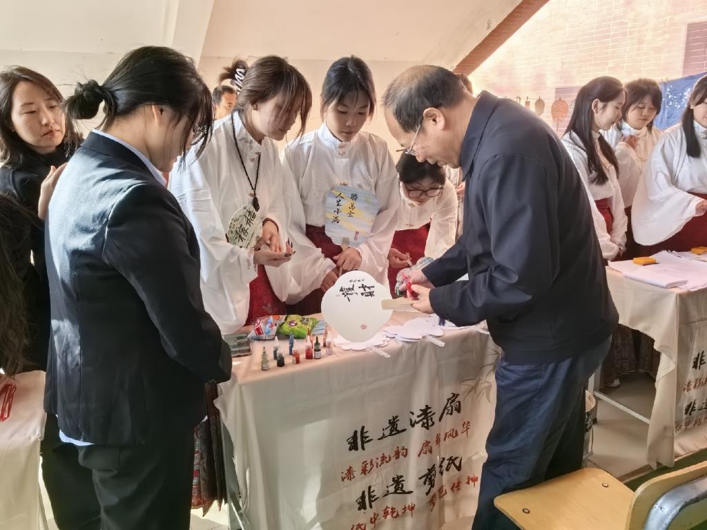 为弘扬中华优秀传统文化,近距离感受非物质文化遗产的独特魅力,烘托浓厚校园文化氛围,11月28日,旅游与管理学院举办“剪纸成花 漆扇舞风 蜡染映梦”非遗文化体验活动。校长仲伟周到场参观指导,与学生亲切互动,参与漆扇制作。